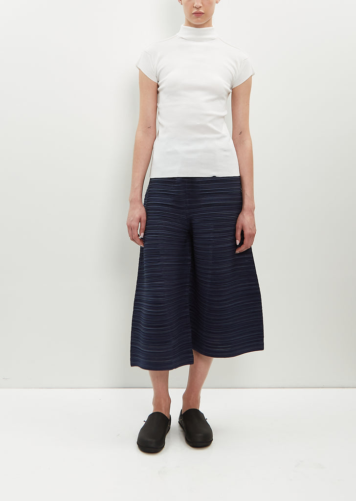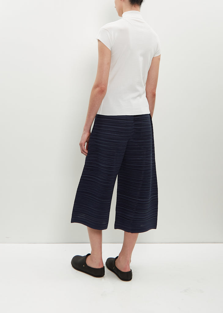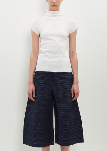 Issey Miyake white pullover top with a high neck and cap sleeves in stretch nylon and cotton blend knit.
