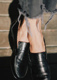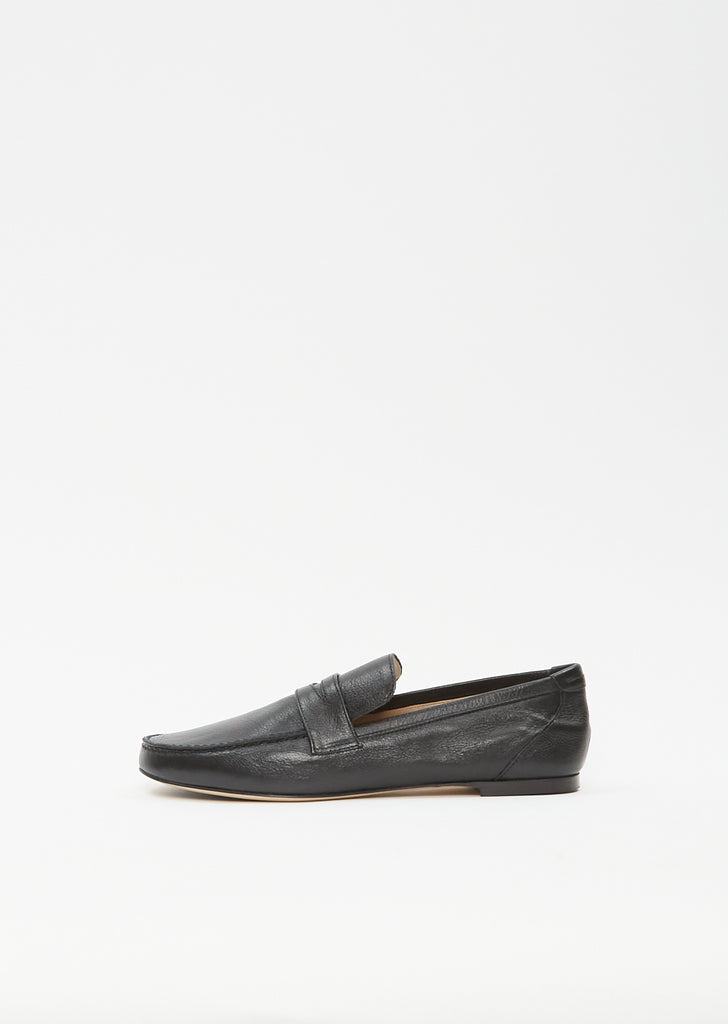 Jamie Haller black classic loafer with a round toe and a leather sole in Italian hand-waxed leather. Finished with a soft leather lining.