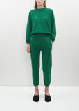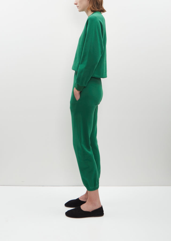 Signature, elevated pull-on sweatpant with a mid-rise and slightly tapered at knee in collegiate green Japanese ultra-soft cotton fleece, designed with a cropped silhouette and seamless sides for a polished look. Features slip pockets and a gathered elasticized waistband and cuffs. Cropped at mid-calf with an easy fit.