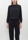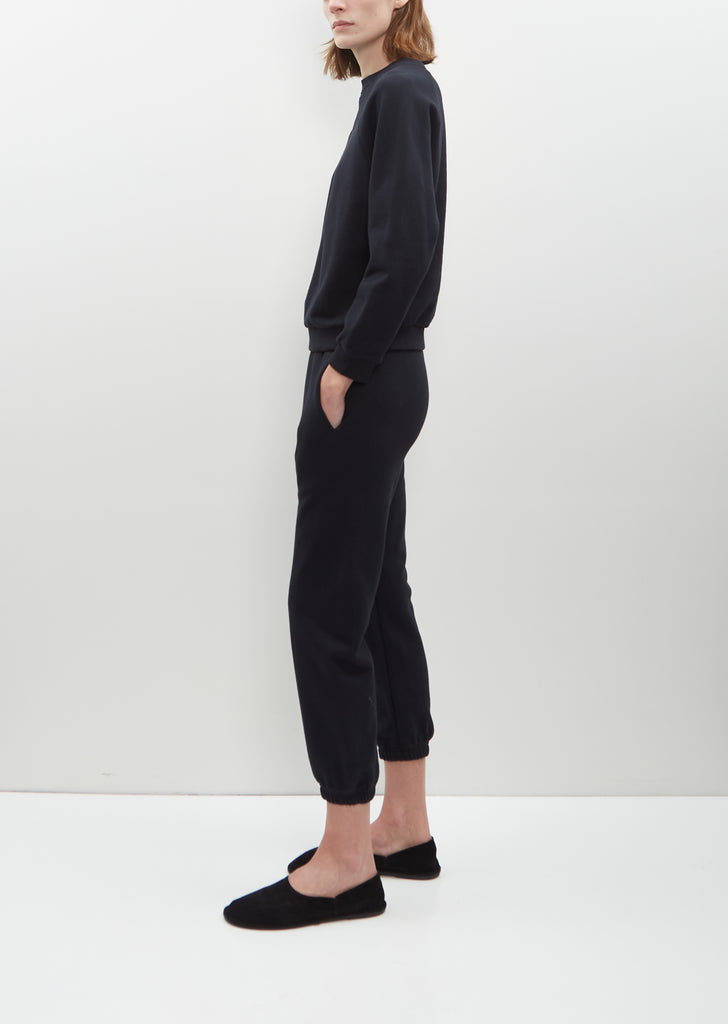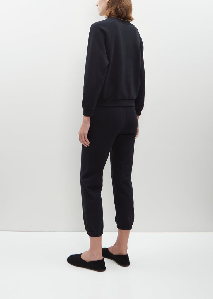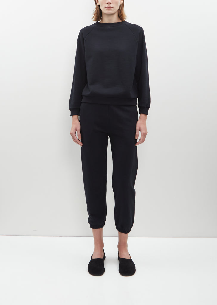 Signature, elevated everyday sweatshirt with a slightly shrunken fit in faded black Japanese ultra-soft cotton fleece. Features cropped raglan sleeves and matching rib trim at neckline, sleeve cuffs and hem.