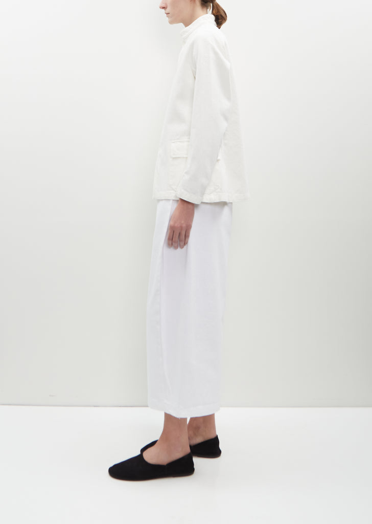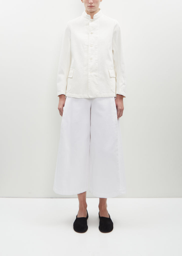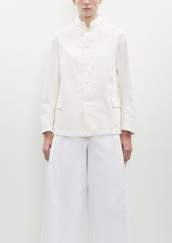 Labo.art winter white single-breasted work-style jacket in cotton drill. Features a band collar, set-in sleeves and flap side pockets. Comes unlined. Regular fit.