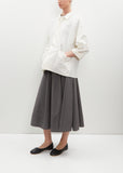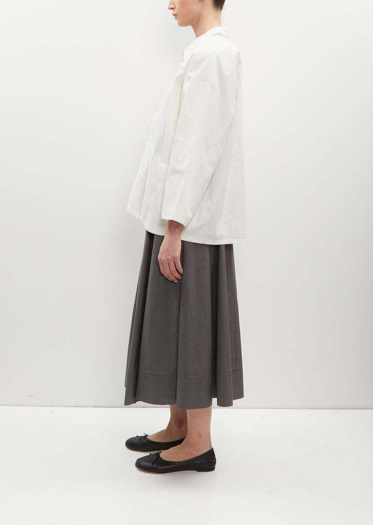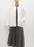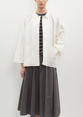 Labo.art light jacket with a shirt collar and wide saddle sleeves in winter white cotton and nylon blend. Features oversized patch pockets at front and a straight hem. Finished with tonal buttons at front closure. Comes unlined.