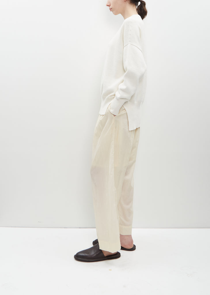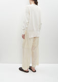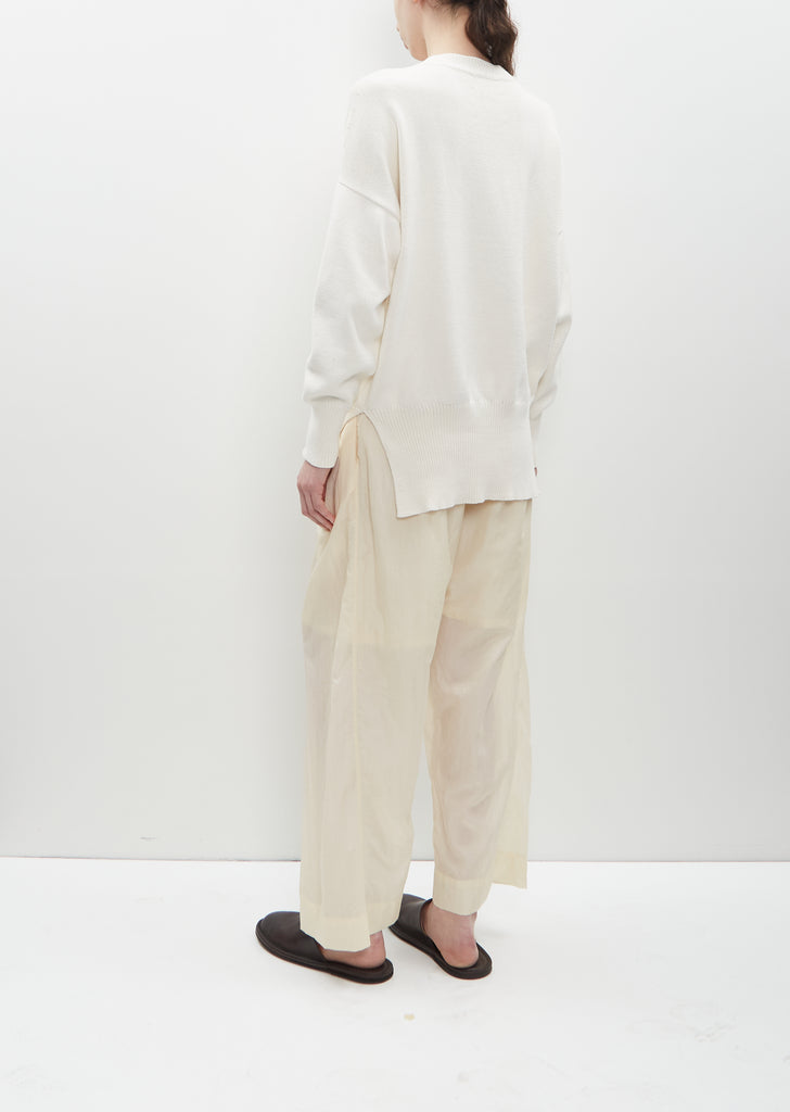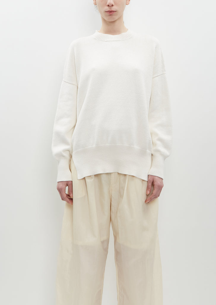 Lauren Manoogian white crewneck sweater with drop shoulders and side slits knitted in mid-weight Pima cotton. Finished with a rib trim at neckline and a wide rib trim at cuffs and hem.