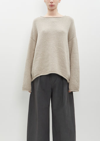 Lauren Manoogian cement beige oversize boatneck sweater with drop shoulders knitted in organic cotton. Finished with a rolled edge neckline, sleeve cuffs and hem.
