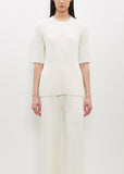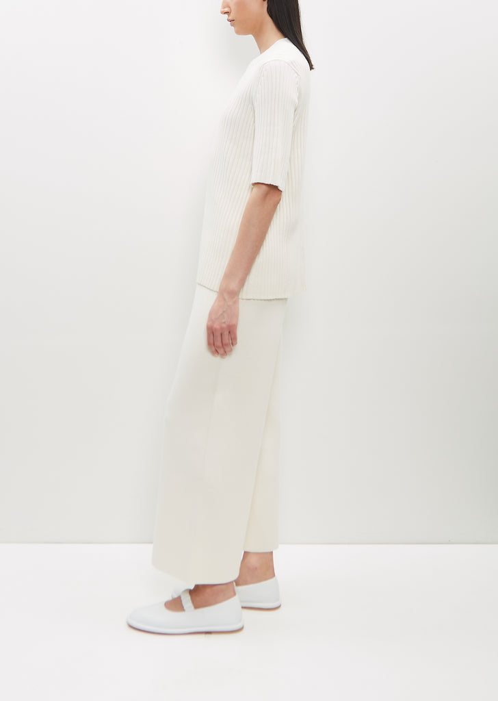 Lauren Manoogian off-white crewneck top with a slightly flared silhouette in soft stretch pima cotton ribbed knit. Features mid-length sleeves and full fashioned details.