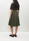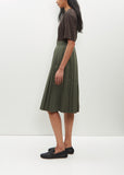 Margaret Howell faded green A-line pleated skirt with a wide waistline in cotton blend twill. Features a concealed side zipper fastening.