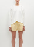 Plan C white sweatshirt with lateral silver buttons and a draped back in cotton fleece with a slightly padded feel. Features a round neck, drop shoulders and rib trim at neck and cuffs.