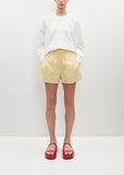 Plan C light yellow shorts with an elasticated pull on waist and side seam pockets in lightweight cotton.
