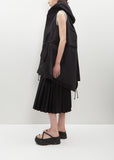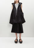 Sacai black oversized fishtail parka vest jacket with an attached hoodie in technical taffeta. Features exposed pocket panels at front and adjustable tonal cording at waist, hem and hoodie.