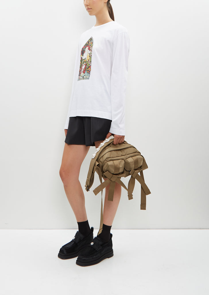 Simone Rocha olive green crossbody bag with floral beaded embellishment in nylon.