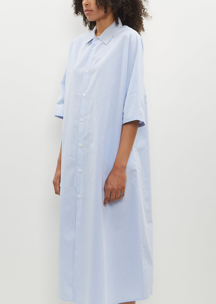 Stephan Schneider light blue relaxed shirt dress with a generous A-line in lightweight poplin. Features a button closure through the front, seamless shoulders and concealed side pockets.