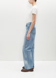 Tanaka bleach blue high-rise fit jean with wide slightly tapered legs and a 5-pocket construction in cotton denim with a washed finish. Features a slightly dipped waistline at front, belt loops and a button and zip-fly fastening.