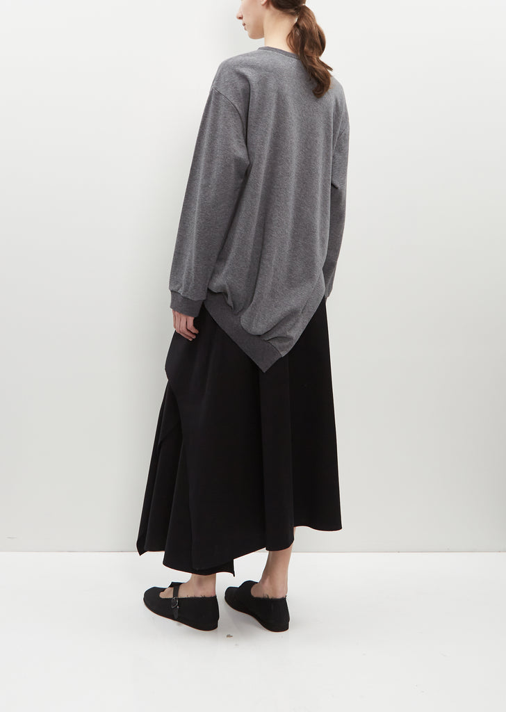 Yohji Yamamoto dark heather grey sweatshirt with asymmetric hem in cotton fleece. Features a slightly darker tonal rib trim at neckline, sleeve cuffs and hem.