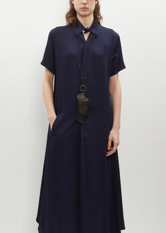 Y's by Yohji Yamamoto black eyeglass case with neck strap in leather. Features a tonal ring hardware and button through closure.