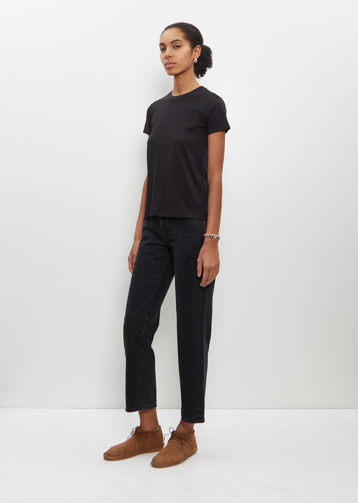 6397 jet black signature short sleeve tee with a rib trim finish at neckline in soft pima cotton. Straight cut with a relaxed fit.