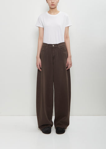 6397 espresso brown jean with wide oversized legs in cotton denim. Features 5-pocket construction and button and zip-fly fastening. Relaxed fit.