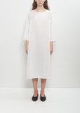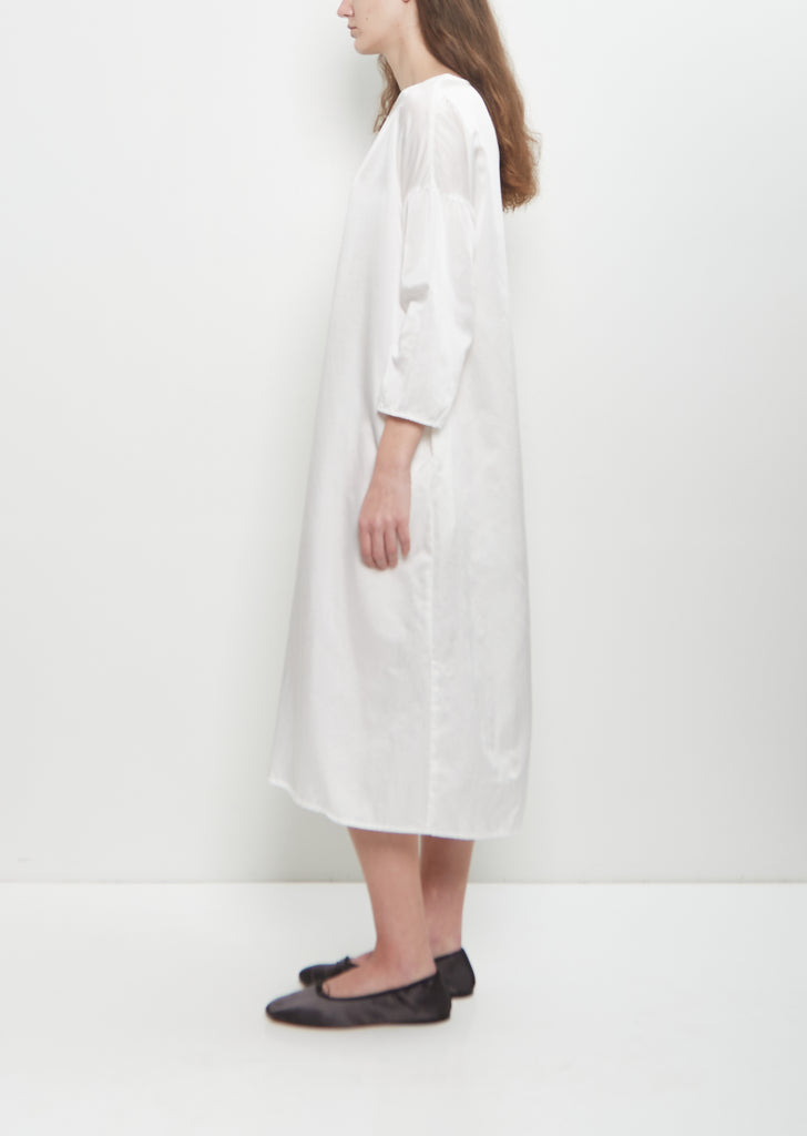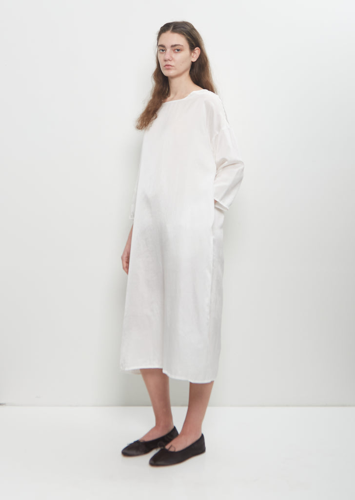 Album di Famiglia milk white pullover A-line tunic dress with a high slit detail at back in smooth silk and cotton blend. Features a round neckline, 3/4 sleeves, dropped shoulders and side seam pockets.