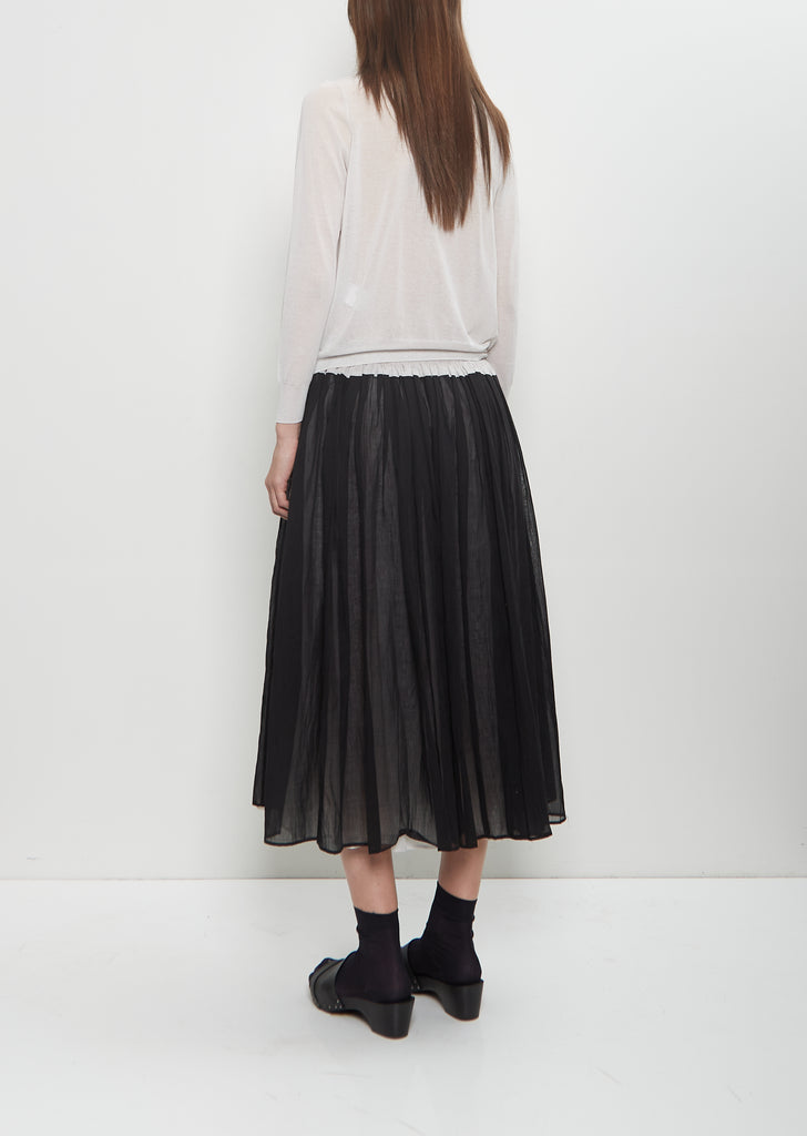Antipast A-line pull-on skirt with a contrasting beige elasticated waist in cotton voile. Features frayed edges at waist. Lined in beige cotton voile.