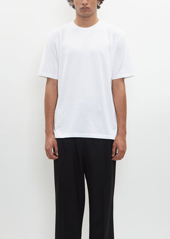 Auralee white short sleeve tee with a round neck in pima cotton with a smooth texture, glossy finish, and beautiful drape. Regular fit.
