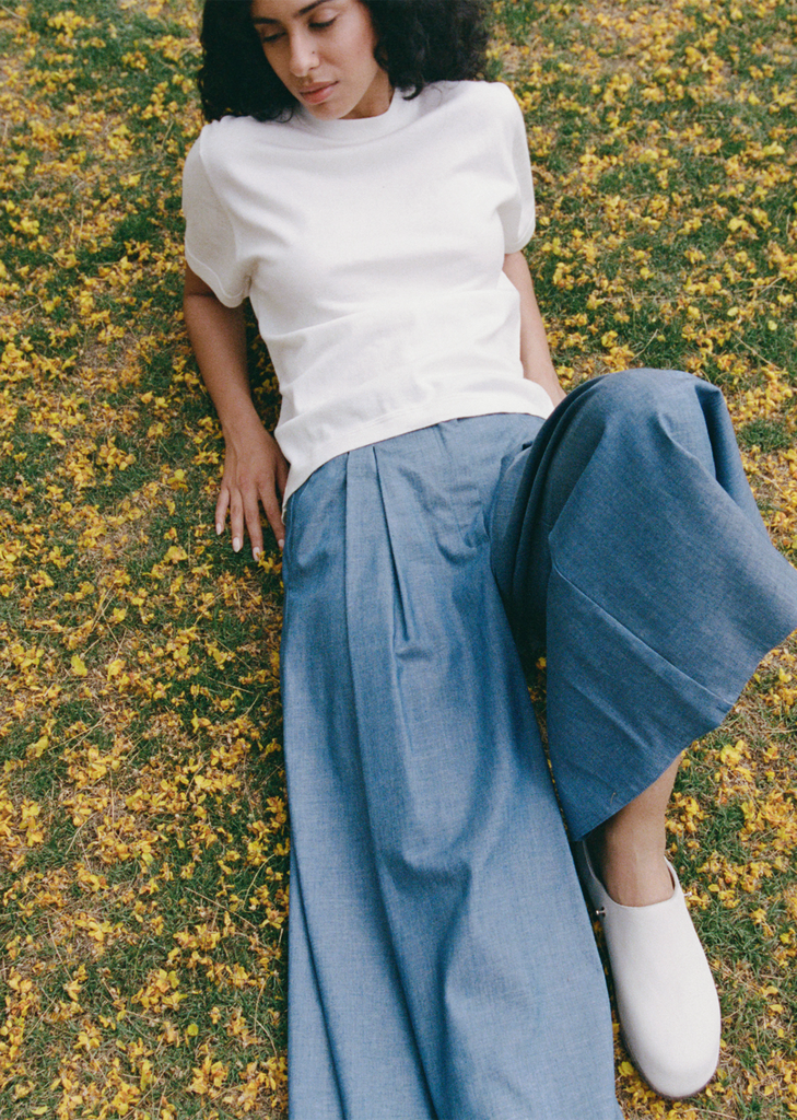 Worn with: n°403 Mary Cotton Cashmere Skirt — Chalk and Mesh Slingback Ballet — Black