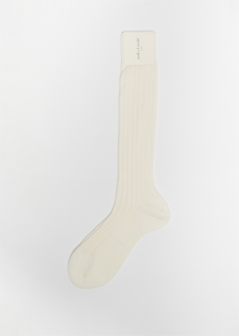 Maria La Rosa ecru tall socks in an organic cotton ribbed knit with reinforced toe, heel, and top.