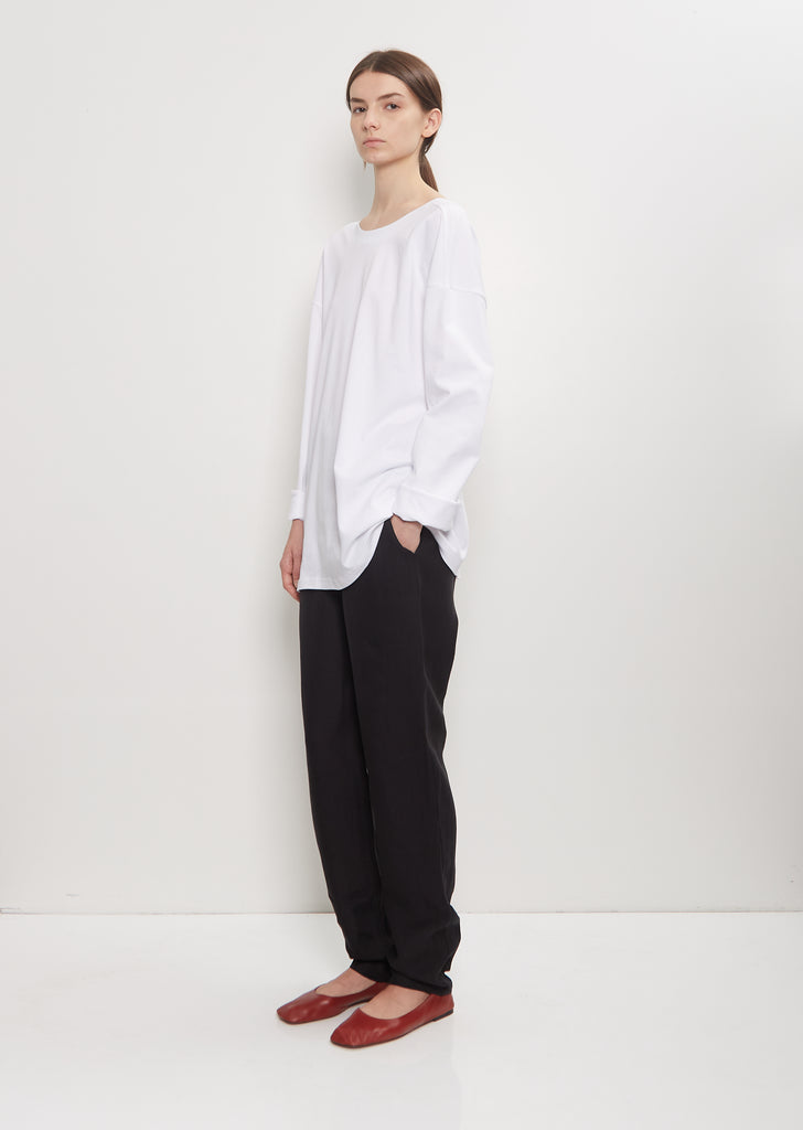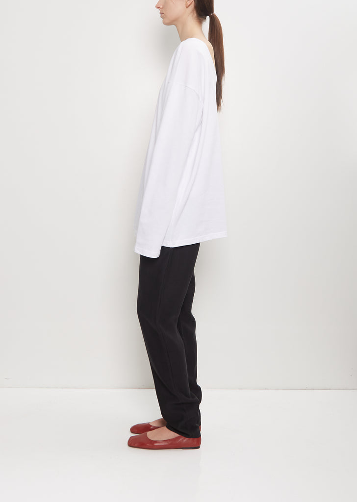 Moniquevanheist white oversized long sleeve t-shirt with a deep round neckline at back in soft and smooth organic cotton jersey. Features a round neckline and dropped shoulders. Relaxed fit.