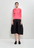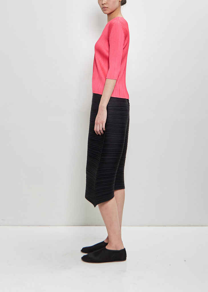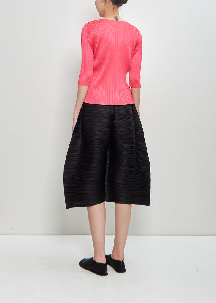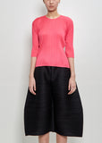 Pleats Please by Issey Miyake bright pink top with 3/4 length sleeves in signature pleated technical chiffon. Features a round neck and dropped shoulders. Close fit.
