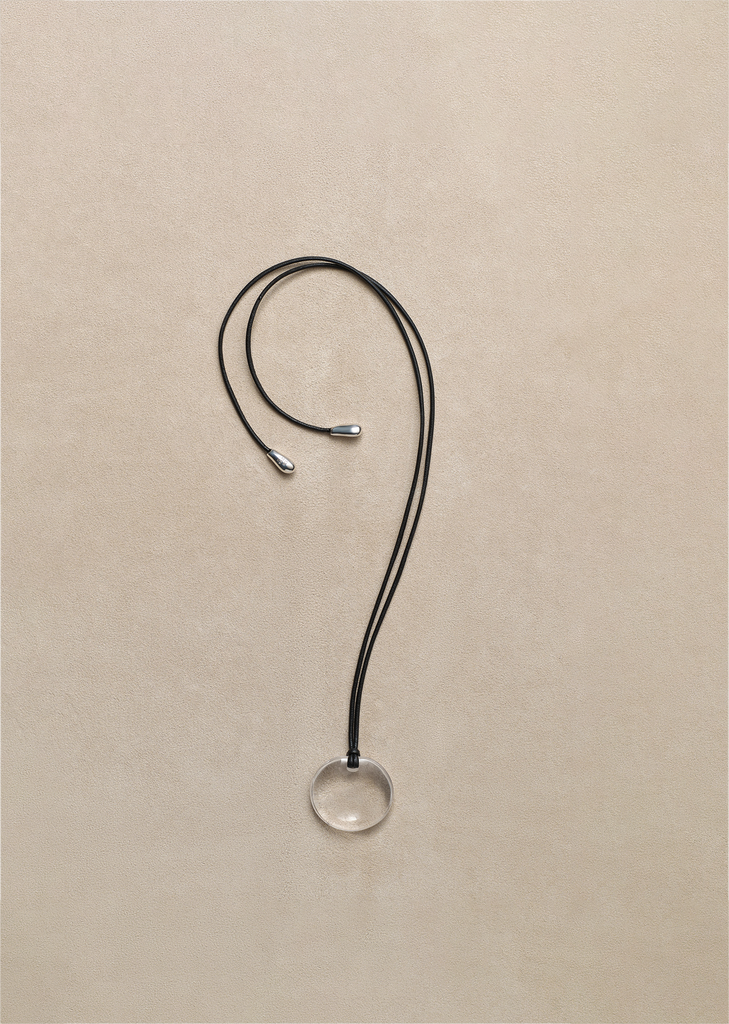 Sophie Buhai hand carved quartz pendant on an adjustable vegan leather cord. Features sterling silver teardrop endings.