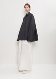 Sofie D'Hoore black long sleeve shirt with a classic collar and side seam pockets in a lightweight technical twill. Features dolman sleeves and mother-of-pearl buttons closure at front. Boxy fit.