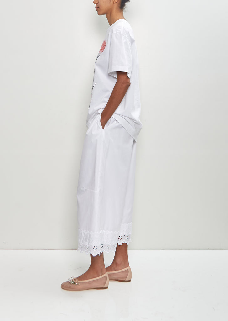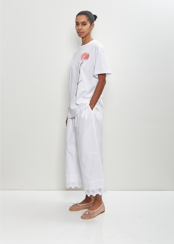 Simone Rocha white relaxed short sleeve tee with a carnation print in soft cotton jersey. Features a round neck slightly dropped shoulders.