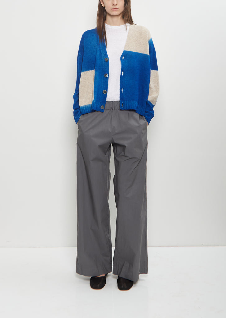 Suzusan royal blue and sand cropped cardigan with a V-neckline and mother-of-pearl button front in mid-weight pure cashmere knit with a traditional Shibori pattern. Features rib trim finishings at neckline, cuffs, and hem. Regular fit.
