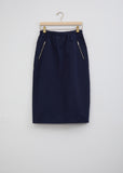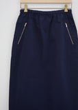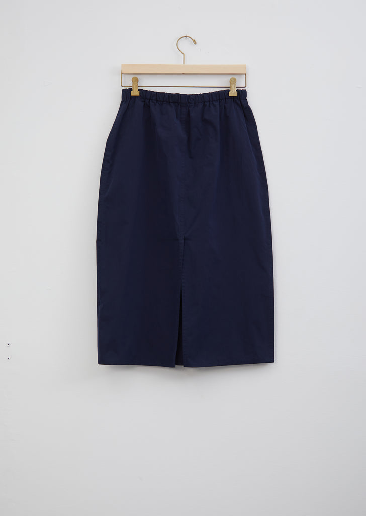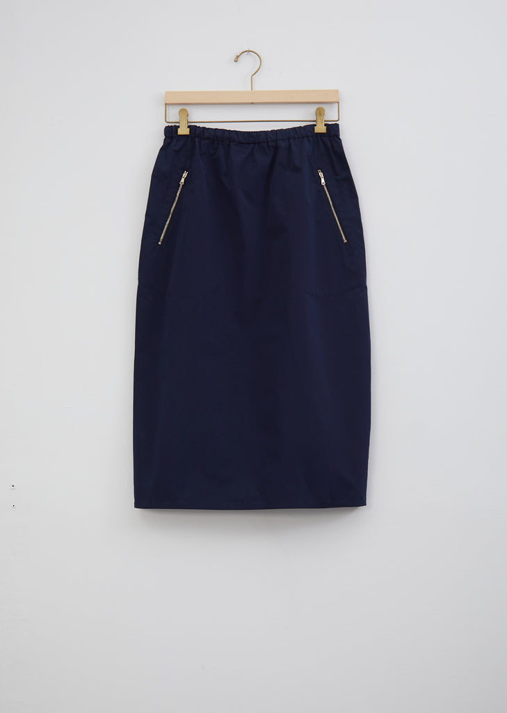 Sofie D'hoore Sinsa Straight Skirt in Dark Navy. Crafted in mid-weight cotton broadcloth with a hint of sheen, classic straight skirt with elasticized waistband and zippered angled pockets for a utility inspired look.