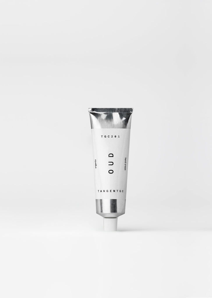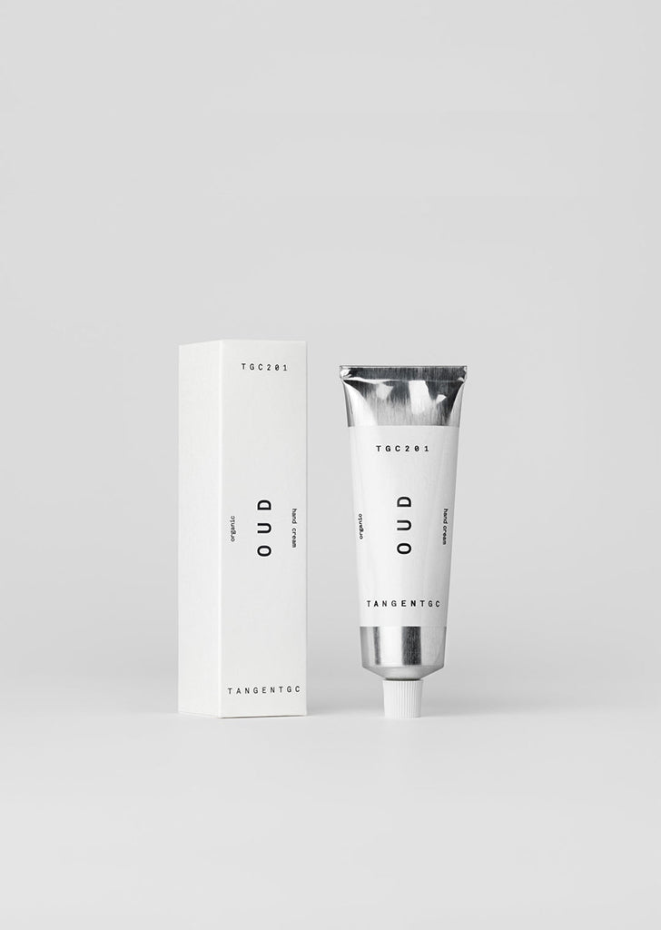 TangentGC oud perfumed organic hand cream – crafted with pure vegetable lipids. Once the host tree is stricken by a certain kind of mould, it secretes resin in defence, turning virgin wood dark. From that darkness the coveted oud oil is extruded by means of steam distillation; generously wooden with resinous spikes.