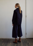 Color: Indigo. 65% Cotton. 35% Polyester. Machine wash warm, low iron on reverse side, or professional dry clean. Made in Japan.