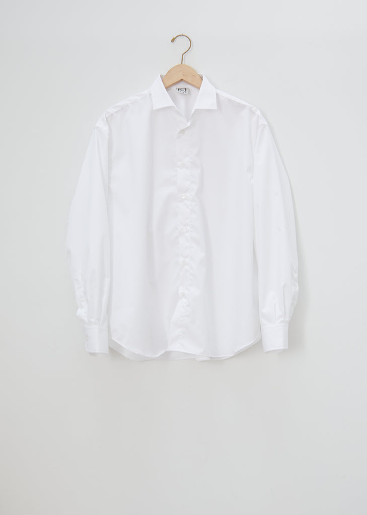 Baserange Ole Popeline Shirt in White. Minimal, basic shirt with mother-of-pearl buttons in an optic white cotton poplin.
