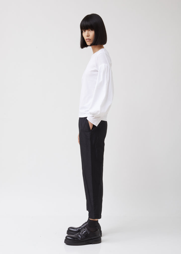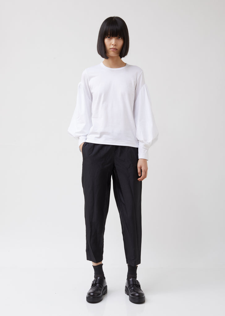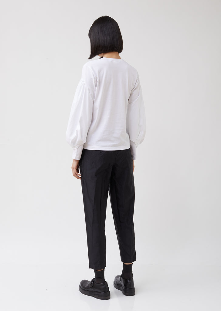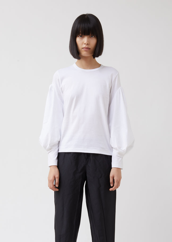 Long-puff-sleeve top in white cotton jersey. Crewneck. Drop shoulders. Cuffed sleeves. Straight hip-length hem. Straight, relaxed fit.