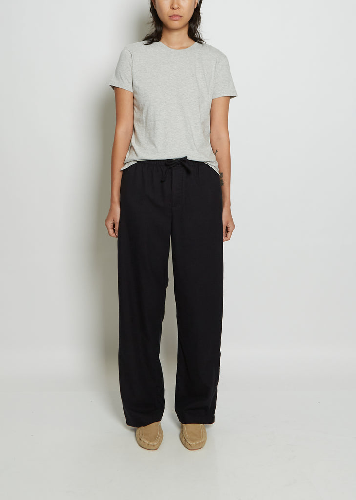 Tekla unisex flannel pyjamas pants in a lucid black organic cotton, woven from lightly brushed, long-staple cotton fibers. Designed for the winter and colder months, this pajama bottom has an oversized and relaxed fit to keep you comfortable and warm. Ships in biodegradable packaging.