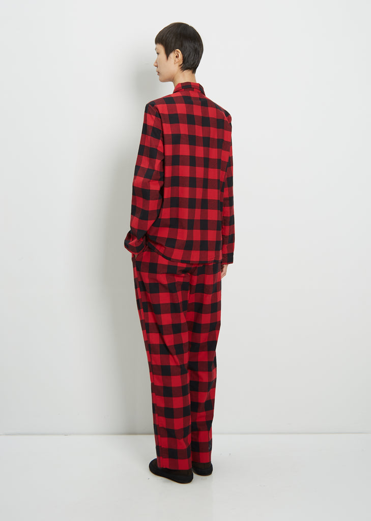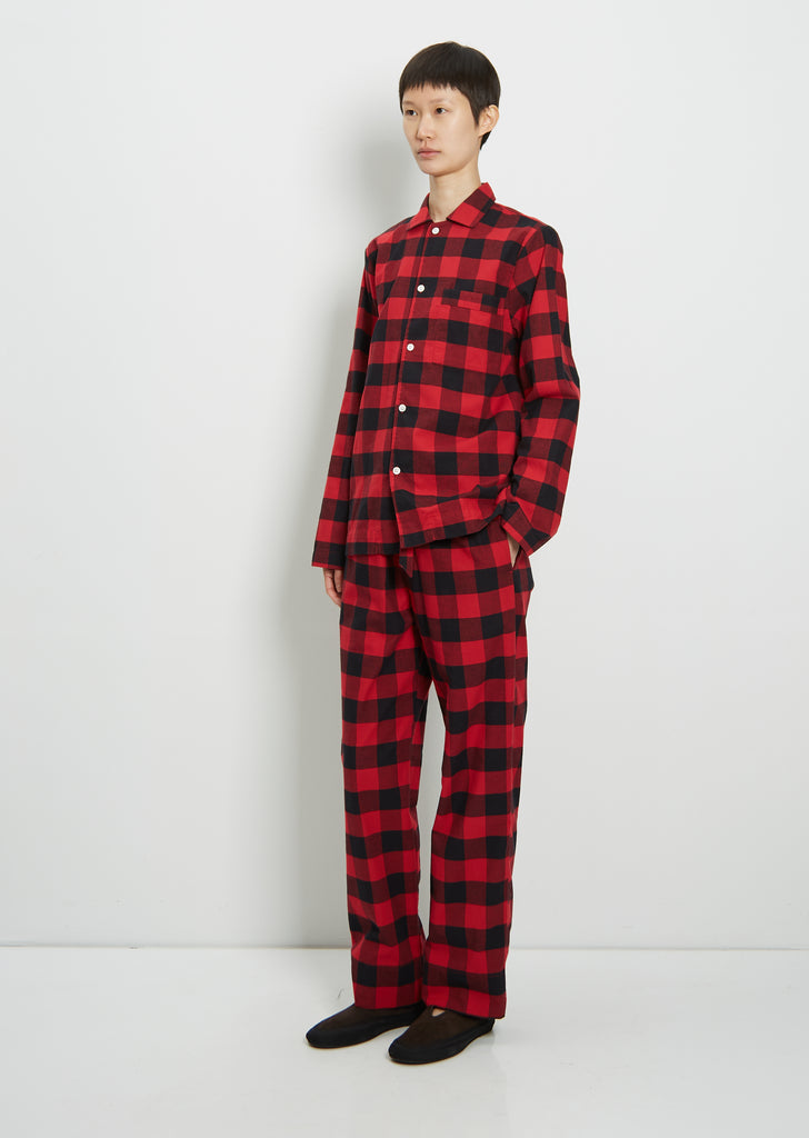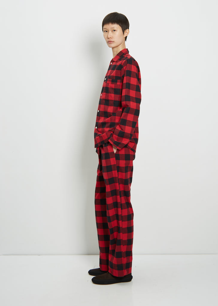 Tekla unisex flannel sleep shirt in a red gingham organic cotton, woven from lightly brushed, long-staple cotton fibers. Designed for the winter and colder months, this pajama top has an oversized and relaxed fit to keep you comfortable and warm.