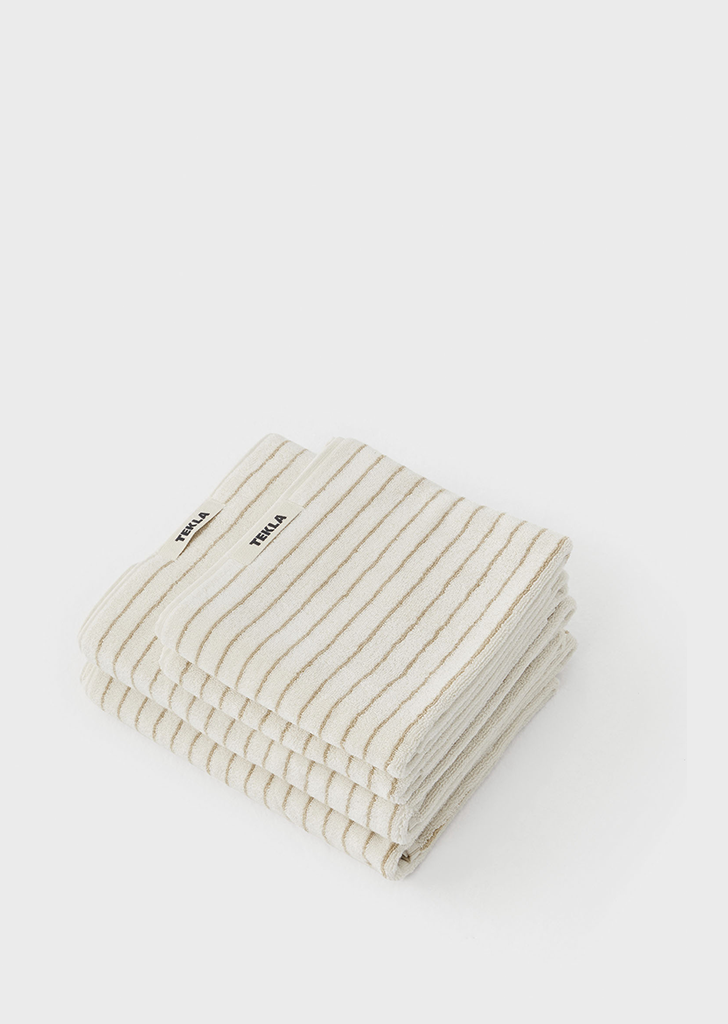 Tekla sienna striped rectangular bath towel in a thick organic terry.