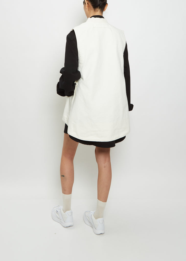 Toogood x Carhartt WIP unisex white zip-up a-line vest with a rib knit collar and side button closure in an organic cotton canvas.