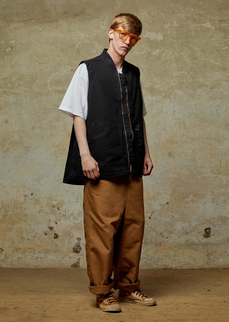 Toogood x Carhartt WIP unisex brown wide-leg pant with a zipper fly and back knee panel detailing in an organic cotton canvas.