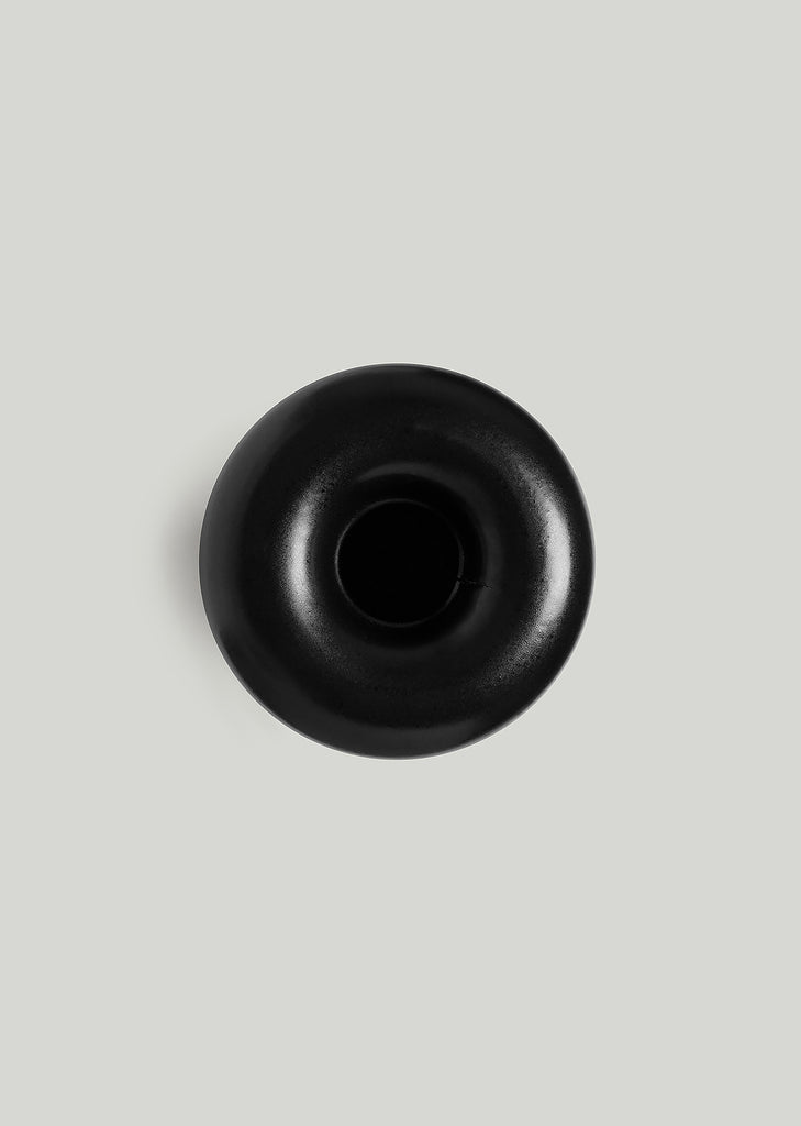 Toogood Homeware charcoal grey dough ceramic vase with a round, donut-shaped top opening. Features a subtle speckling effect throughout and fired with a matte glaze finish. Sold individually.