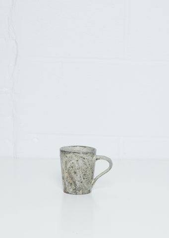 Toru Hatta white make up ceramic mug with handle. Natural grey flecks with pale pink and blue undertones. This one of a kind piece is glazed and fired in a wood-fire kiln giving it a smooth yet naturally rigid texture. Each piece may vary in color and texture. Sold individually.