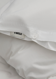 Tekla pure white queen size percale duvet cover is designed to provide the feel of freshly washed sheets, day after day. Woven using extra-long yarns, the duvet cover will gently soften over time without pilling and guarantees a deep, pure colour even after years of use.