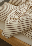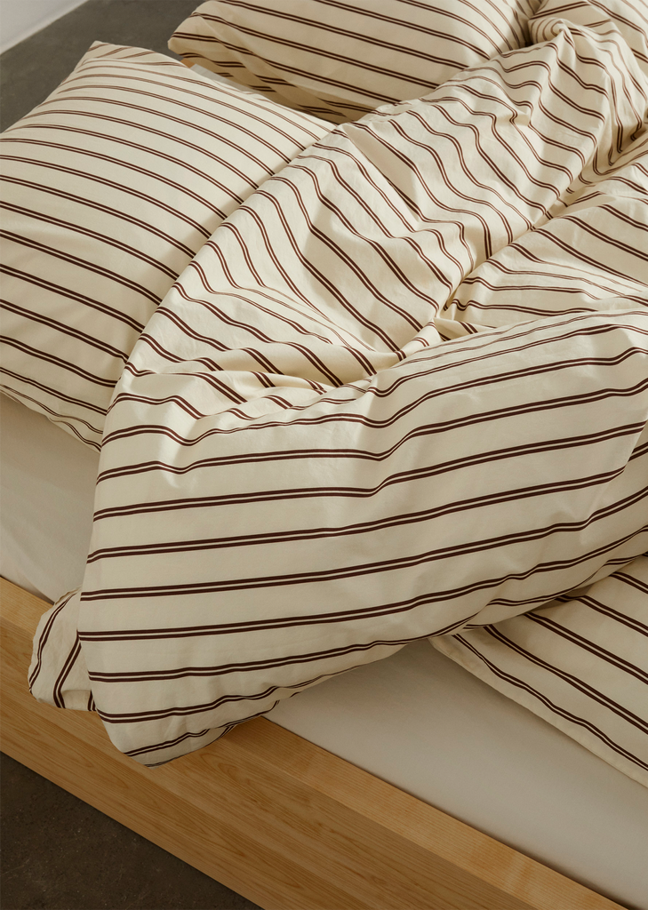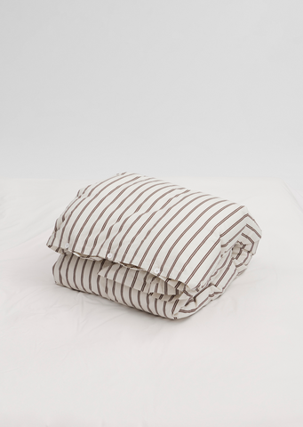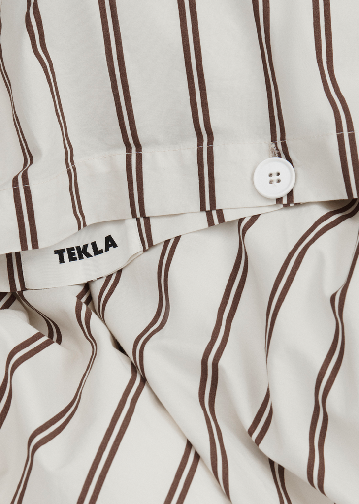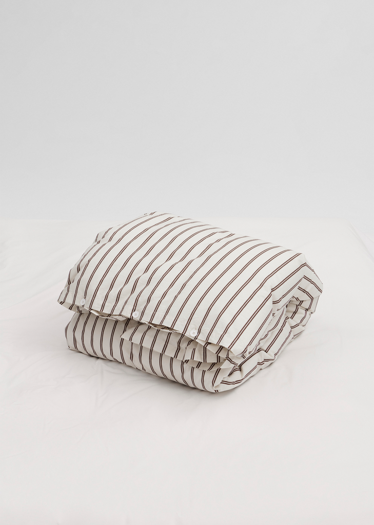 Tekla rich brown striped on warm white king size percale duvet cover is designed to provide the feel of freshly washed sheets, day after day. Woven using extra-long yarns, the duvet cover will gently soften over time without pilling and guarantees a deep, pure colour even after years of use.