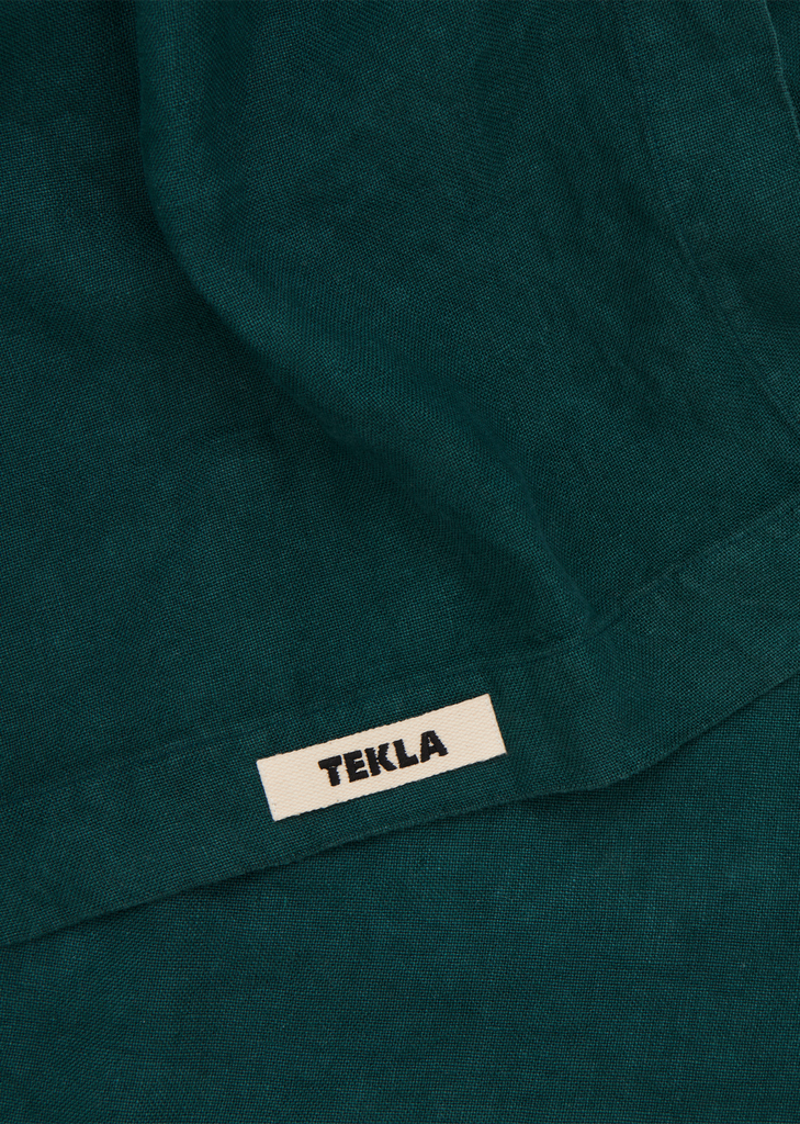 Tekla rich emerald green linen bedspread adds depth and richness to bedding, providing comforting weight at night and a functional design element during the day. The bedspread balances softness with greater texture, made from a distinctly tactile open-weave that’s lightly stonewashed so it’s gentle on skin.