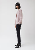 Long-sleeve rose-shade silk shirt with overlapped lapels that run the length of the garment. Notched collar. Slightly dropped shoulder. Patch chest pocket. Fabric drapes into soft folds. Back shoulder yoke. Hip-length hem. Relaxed fit.