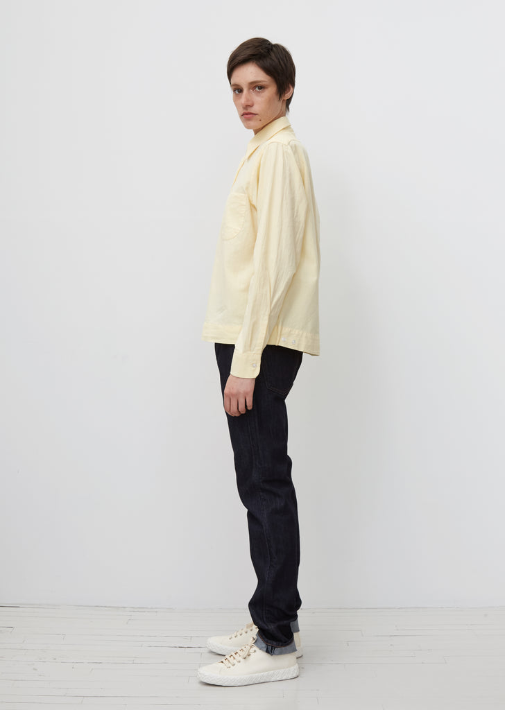 Cotton chambray shirt in pale yellow. Cut for a straight cut. Buttoned cuffs. Front button fastening.