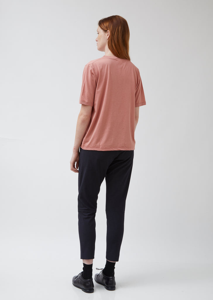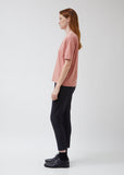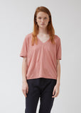 Blush-pink cotton-jersey V-neck T-shirt in a boxy silhouette. Shell fabric tape at neck. Short sleeves; nearly elbow-length. Straight hip-length hem. Straight, relaxed fit.