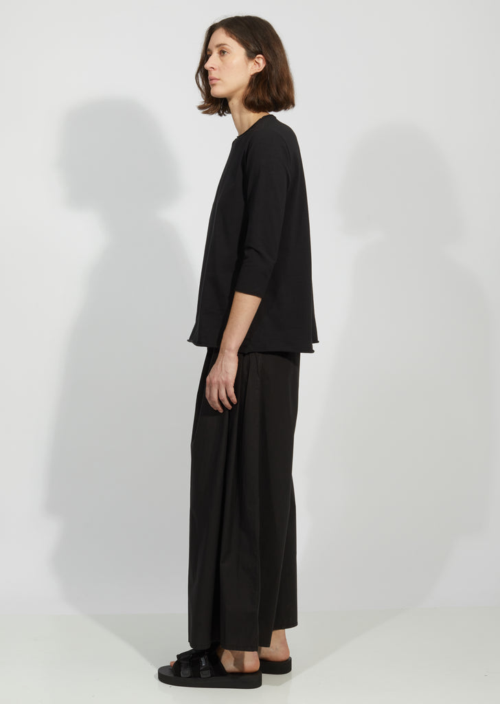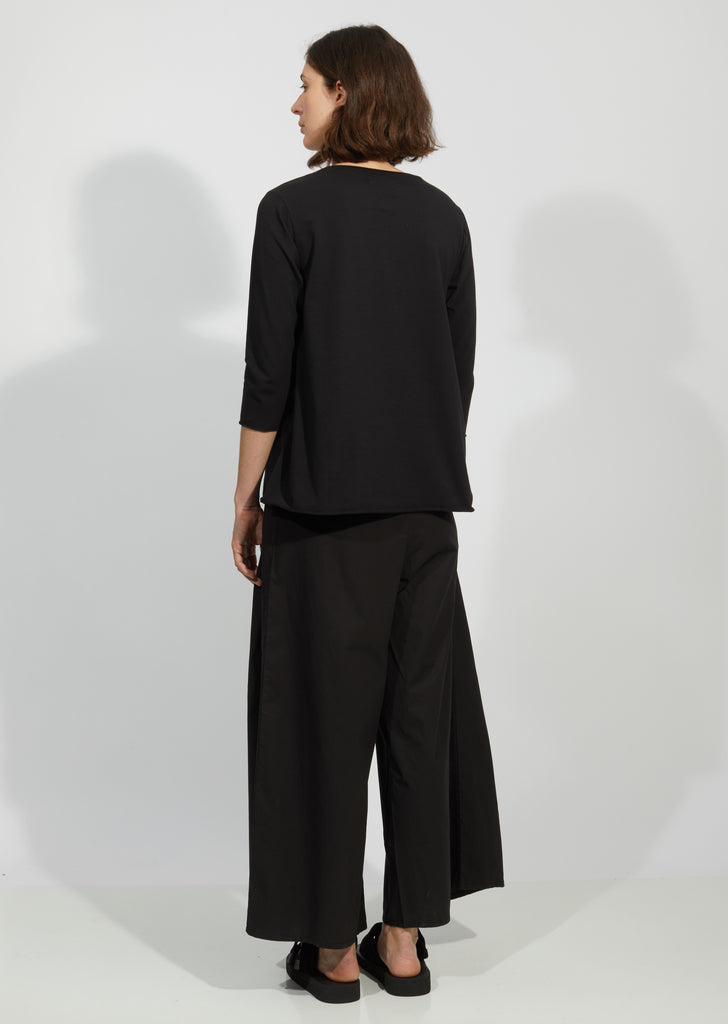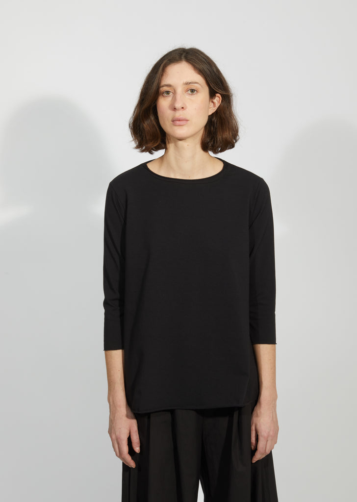 Black three-quarter-sleeve T-shirt in Italian cotton-blend jersey with a bit of stretch, imagined with a slightly flared cut.